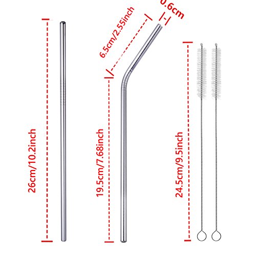 -. Feature : Food grade stainless steel straw are ECO FRIENDLY & NON-TOXIC - these are reusable and super durable,best replacement for plastic straws, stainless steel drinking straws are free from toxins like bisphenol A (BPA) found in plastic straws. / Extra long & Strong- All angled and stright straws are 1/4 inch diameter and 10.2 inch height for perfect drinking, Fit both 30 OZ and 20 OZ RTIC Tumbler, Yeti Ozark Trail SIC & RTIC Tumblers. these sleek reusable straws in stainless steel keep the chill on for enjoying everyday beverages and sipping cocktails. they are made of 18/8 Stainless Steel, they will not rust, bend or break. / Safety and toddler proof - Paper straws get gross after a couple minutes. These are stylish and practical! Does your toddler always bite straws? These keep their shape and are at the perfect angle for drinking. / Easy to clean and dishwasher safe- They are super easy to clean, Each pack comes with a bonus cleaning brush. Just clean the inside with the brush and then put them in the dishwasher. Also includes 3 straight straws and 3 bent straws for your needs and convenience. Fits any kitchen. Great for parties and entertaining of all kinds-Juicing,cocktails, drinking. / Enough quantity pack and 0 risk to order- you will get 4pcs angled and 4 pcs stright stainless steel straws with 2 cleaning brush. enough for your family use. and we will take responsibility for your order, 100% refund or replacement if you are not satisfied.