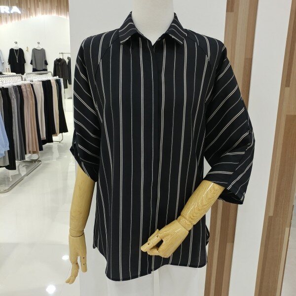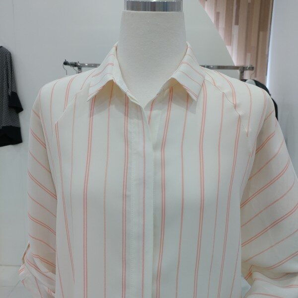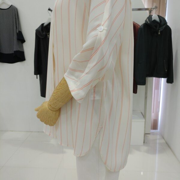 이지한 클로징은 물론 쉬폰 소재인데도 착용시 거의 비추지 않아 편하게 착용하시기 좋고 롤업소매로도 변형이 가능합니다