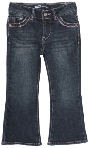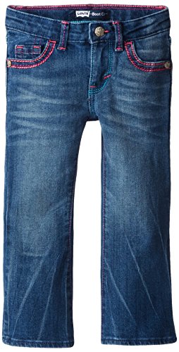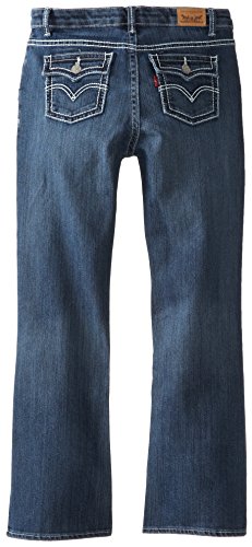 Levi's Taylor thick stitch boot cut for girls updates a classic fit with trendy details. This jean offers an adjustable waistband and comfortable stretch denim, durable enough to keep up with a girl on the go. She is sure to love the fashionable thick stitching and floral hardware details.Feature