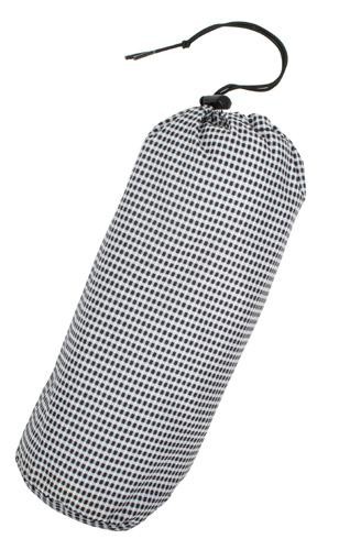 | タウンユースでも違和感のないカジュアルテイストなパターンを採用。収納袋はコンパクトに収納ができ、持ち運びに便利。 |