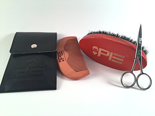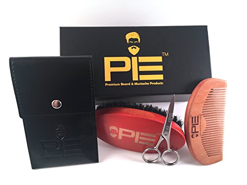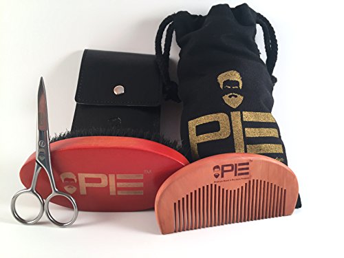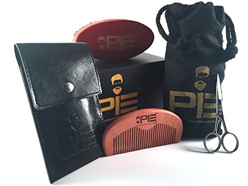Beard Grooming & Trimming Kit for Men Care - Beard Brush, Beard Comb - 100% stainless Steal scissors - Faux Leather Pouch for Comb & Scissors - Use with...