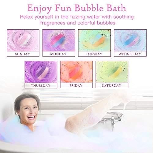 - LUXURY BATH SPA GIFT SET: This colorful bath bombs set contains 7 unique aromatherapy experiences to treat yourself and delight your senses. Best ideal spa bath gift for Birthdays, Valentine, Anniversaries, Mother’s & Father’s Days that will surprise people of all ages!