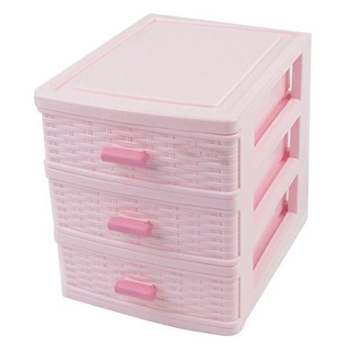 Plastic Drawer Designed 3 Compartment Jewelry Storage Box Light Pink