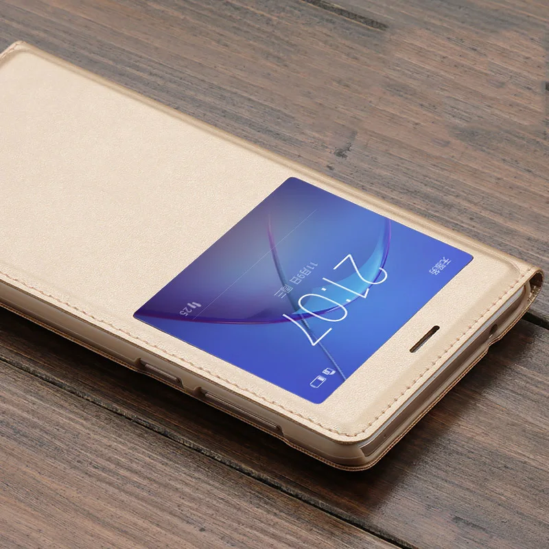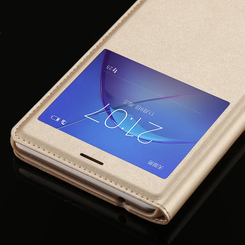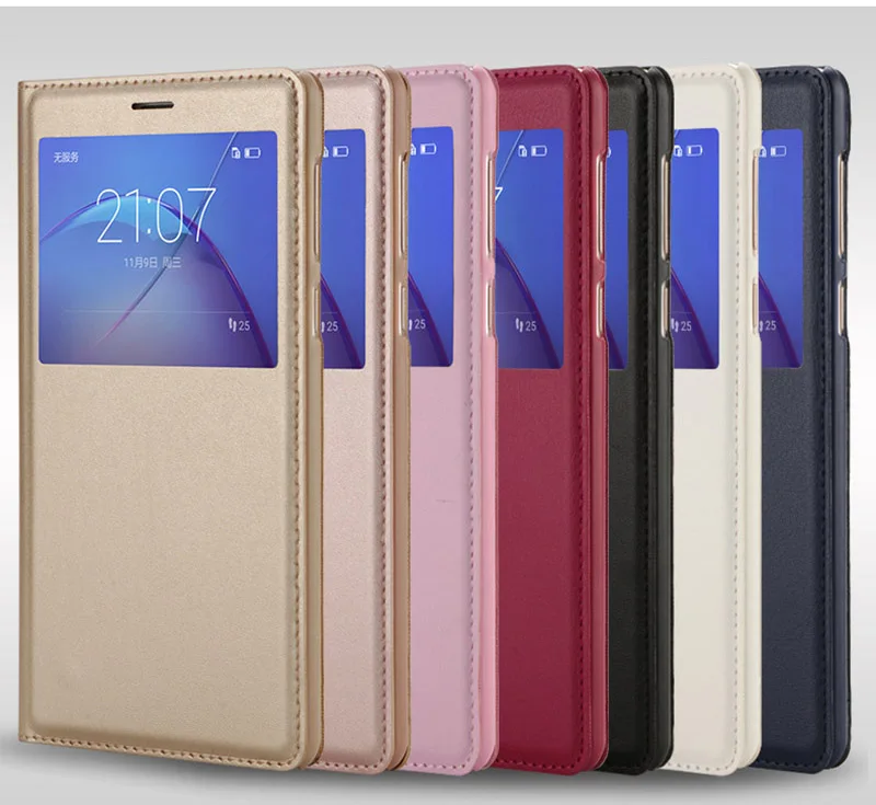 Features:Double View Windows Call Display Silk Leather Case