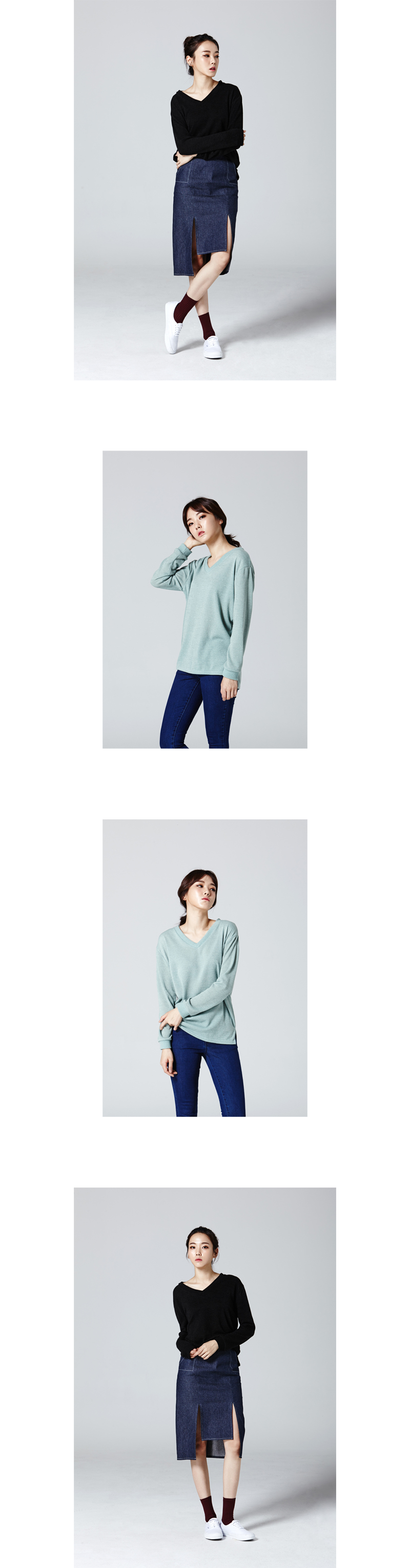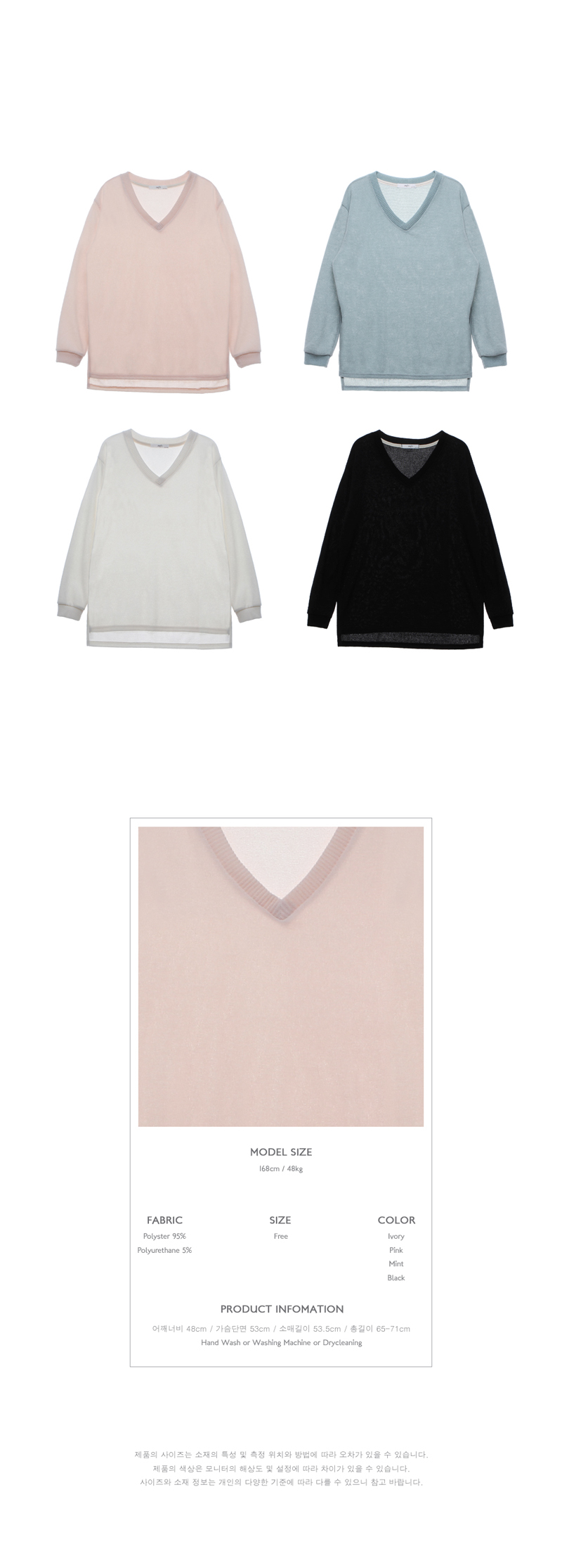 적당히 자연스럽게 떨어지는 핏이 예쁜 v넥 니트입니다.