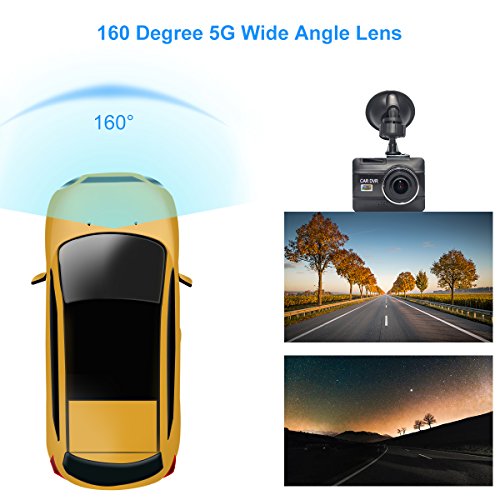 Dash Cam, HEEGOMN Full HD 30FPS(1280x720) 160 Degree 5G Wide Angle Lens Car Dashboard Camera with Video Sensor, G-Sensor ,Parking Monitor, Driving assistance
