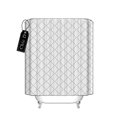 Gray Geometric Patterns Shower Curtain,Waterproof Polyester Fabric Bathroom Decor (White Grey)