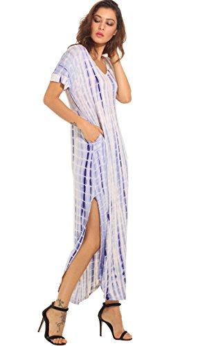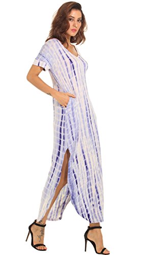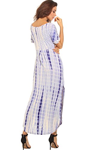 Womwen's Casual Maxi Short Sleeve Split Tie Dye Long Dress