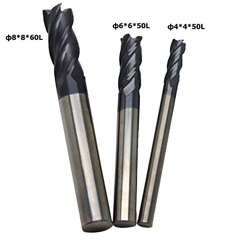 Ougar8 4 6 8mm CNC Carbide Lathe Milling Cutter Center Cutting Router Bits Tungsten TiAlN Coated Cutting End Mill Square Endmills Tool(3pcs)