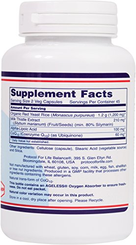 -. Title : Protocol For Life Balance - Red Yeast Rice Plus 600 mg - with CoQ10, Milk Thistle & Alpha-Lipoic Acid to support Cardiovascular and Liver Function - 90 Veg Capsules