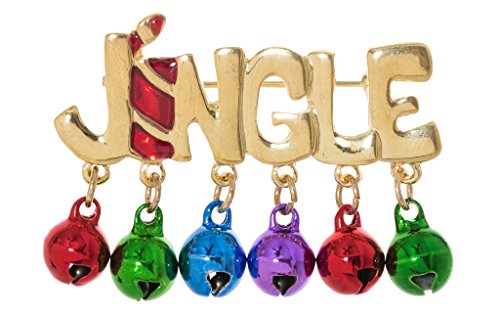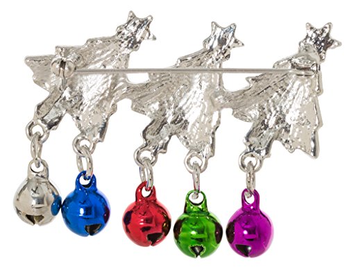 FESTIVE HOLIDAY CHRISTMAS X-MAS BROOCH PIN WITH DANGLING MULTICOLOR BELLS
