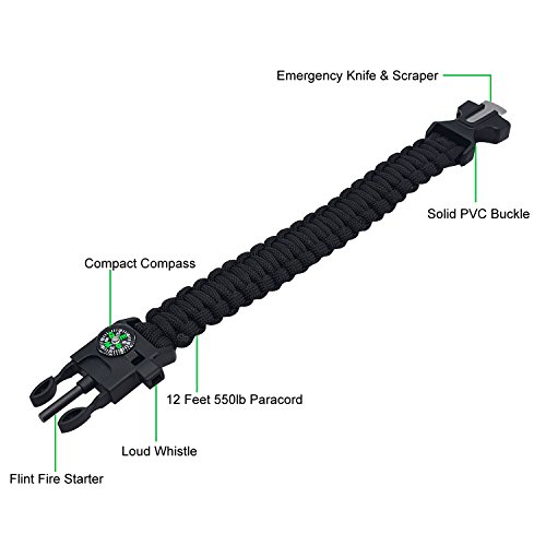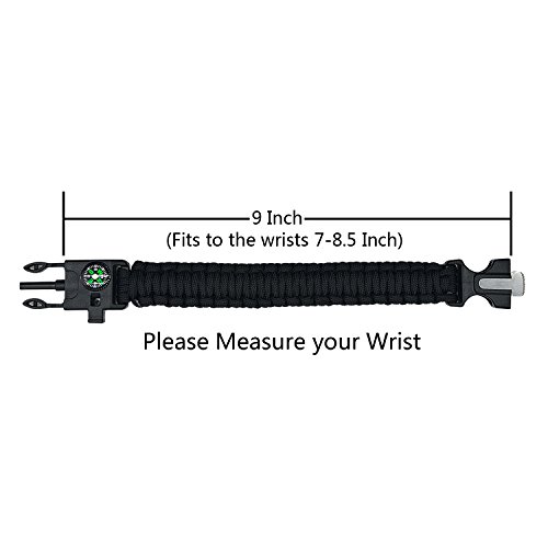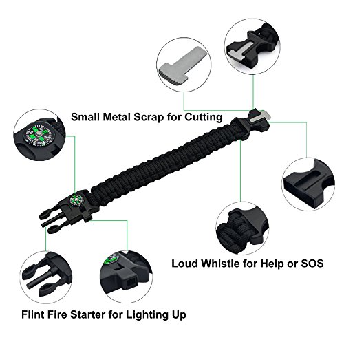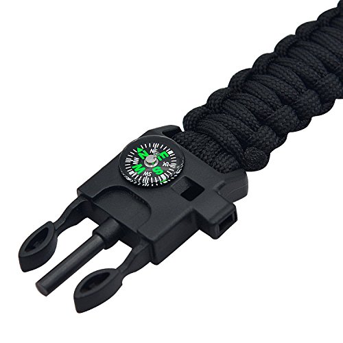 MULTIFUNCTIONAL : This is a 5 in 1 survival paracord bracelet ,features with flint fire starter ,compass, emergency knife and whistler prepared for different situation