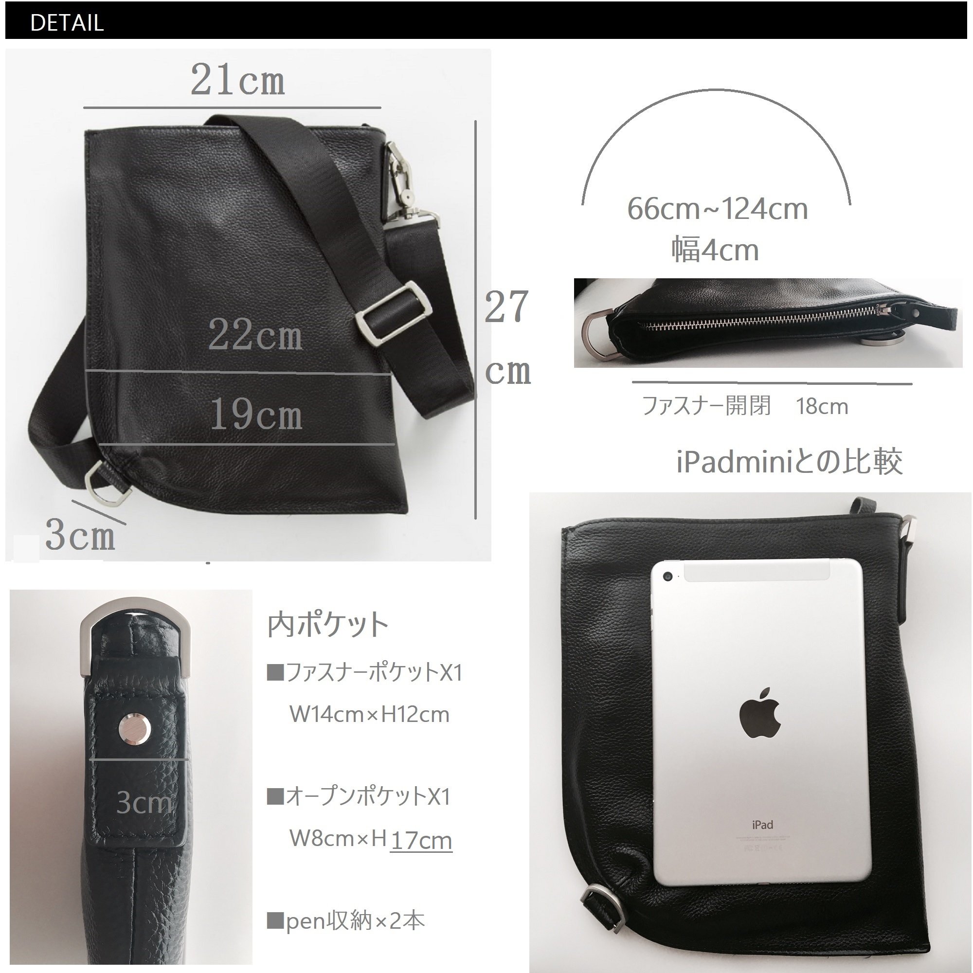 Pocket: Inner zipper × 1 inside open pocket × 1 pen pocket × 2