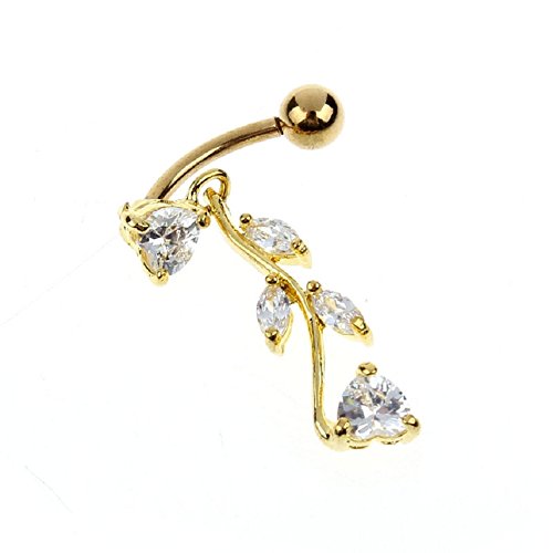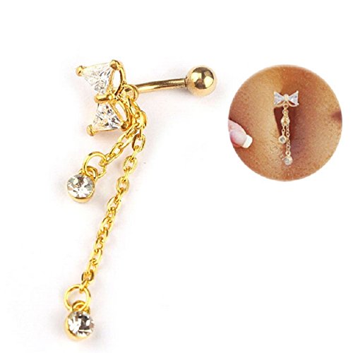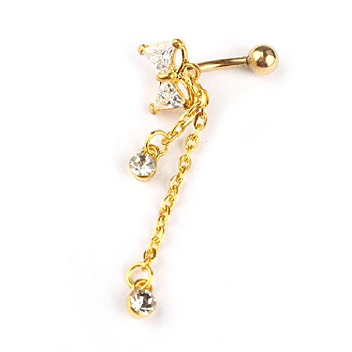 -. Title : Tonsee Gold Dangle Ball Barbell Bar Belly Button Navel Ring Body Piercing