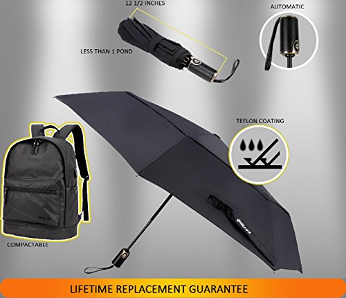 -. Title : Benkii 60 Mph Windproof 10 Ribs Travel Umbrella with Auto Open Close Button