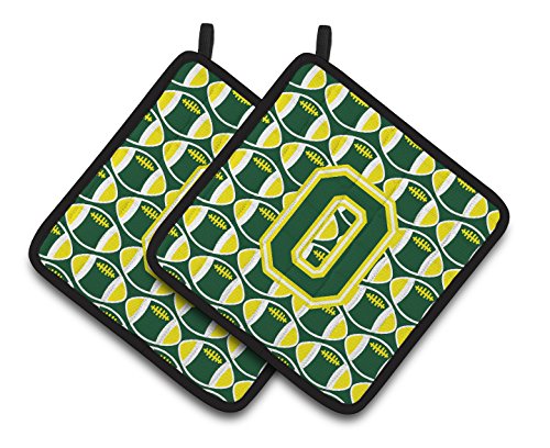 Caroline's Treasures Letter O Football green & Yellow Pair of Pot Holders CJ1075-OPTHD, 7.5HX7.5W, Multicolor