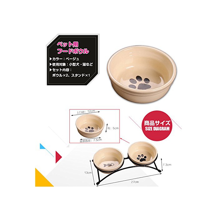 사양 ◆ 볼 사이즈: 약12.5cm×5cm ◆ 스탠드 사이즈:약27cm×13cm ◆ 컬러:베이지 ◆ 사용 대상:소형 개와 고양이 등 ◆ 세트 내용:볼×2,스탠드×1