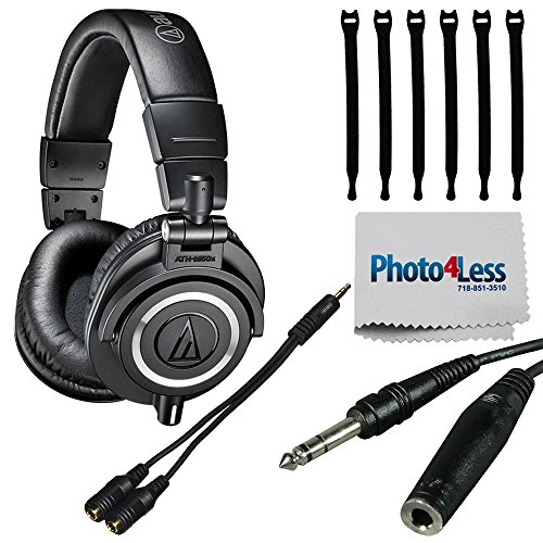 -. Title : Audio-Technica ATH-M50x Professional Monitor Headphones, Black + Axis Headphone Splitter + 1/4 inch TRS Headphone Extension Cable + Strapeez + Photo4Less Cleaning Cloth - Top Value Headphone Bundle