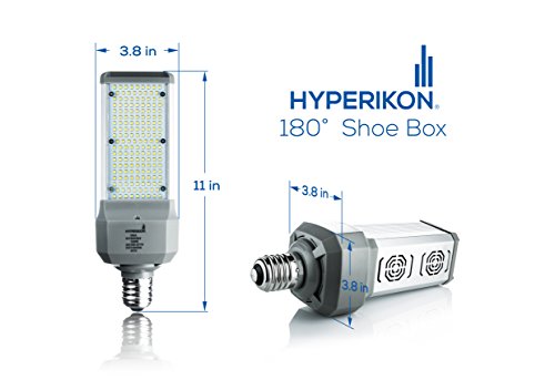 - Lifetime of more than 45,000+ hours and backed by a 5 year unlimited warranty. Hyperikon® LED Shoebox comes with a twistable E39 base to direct the light in any desired direction and is ideal for outdoor street and area lighting applications.