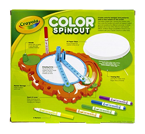 Create colorful designs and patterns with a few twists of the wrist! Insert a paper disc, choose your marker color, then crank the handle and watch art happen! Connect up to 3 markers at once and adjust gear arms for different outcomes.