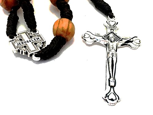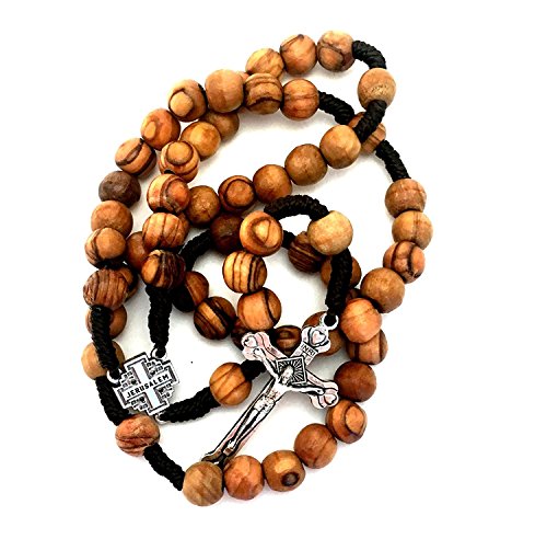 Olive Wood Rosary - Christian Gift from Jerusalem, Traditional Cord Wooden Prayer Beads