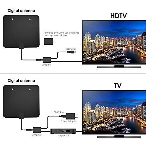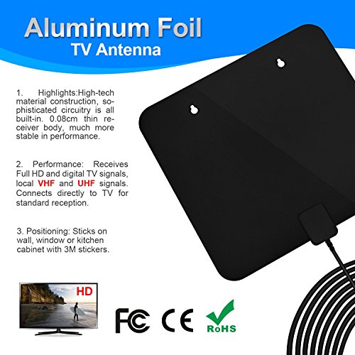 Studio : Tong cheng video Publisher : Tong cheng video Binding : Electronics Product Description TV Antenna 50 Mile Range( With UL Certificate) Ultra-thin aluminum TV antenna for digital TV indoor A new generation of aluminum foil material to get more frequencies and stronger signal. Specification: Range: 50 miles with amplifier Connectors: F Male,Voltage:5V Power supply connector: USB Before you use, visit antennaweb or antennapoint to check the quantity of broadcast towers surround you within 50miles. Notice: ◆The actual receivable range may highly depends on your location and distance between the antenna and broadcast tower.Areas with large obstructions will reduce effective range as in valleys, mountains,etc.Frequently scan is needed to get better signal every time when the indoor antenna is moved. ◆Detachable antenna amplifier is not necessary if the distance between your house and the broadcast tower is within 20 miles. We do NOT Recommend to use this amplifier or booster if your house is close enough to the broadcast tower and the antenna can get a strong enough signal. If your Indoor TV antenna is not working as expected, try the following tips: 1, Check and assure you have correctly connected the antenna to your HDTV or third-party HD receiver. 2, Re-scan for channels: In the TV's setup menu, set the mode to indoor antenna or air. Refer to the TV manual for detailed instructions. 3, Reposition the amplifier antenna in a different location. Sometimes moving a few feet can make a difference. 4, Keep the indoor antenna away from those big power consumption devices which will have interference, such as air conditioner, refrigerator and microwave oven ,etc. 5, If a signal cannot be received with the external amplifier, remove the amplifier and try again.