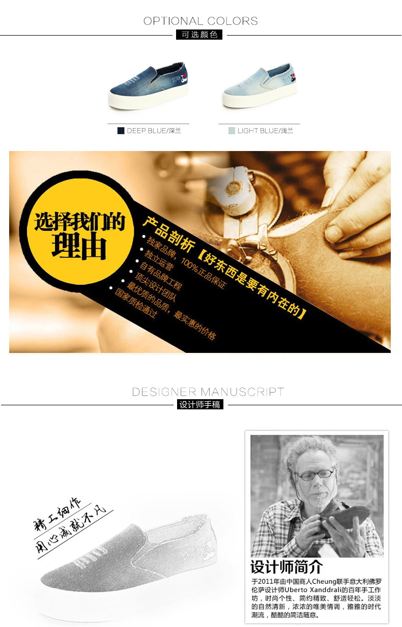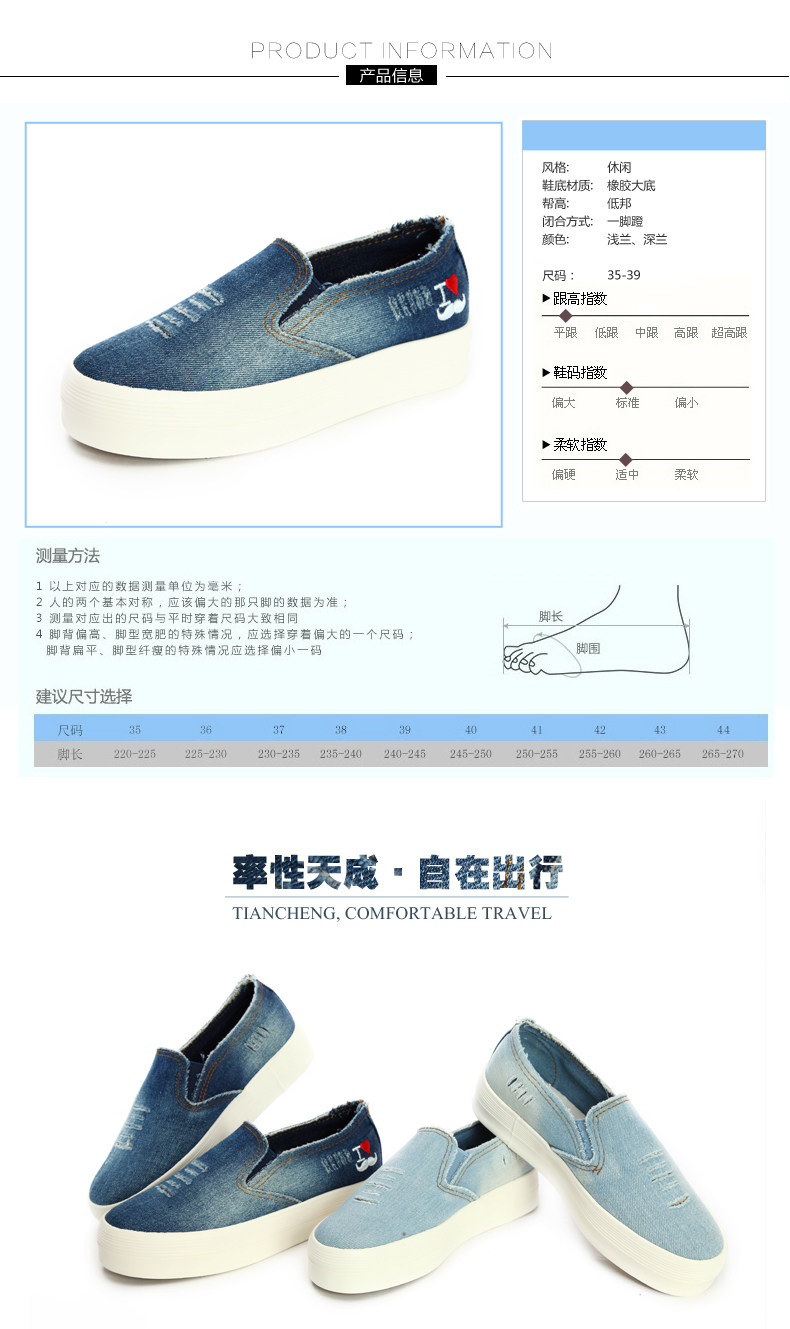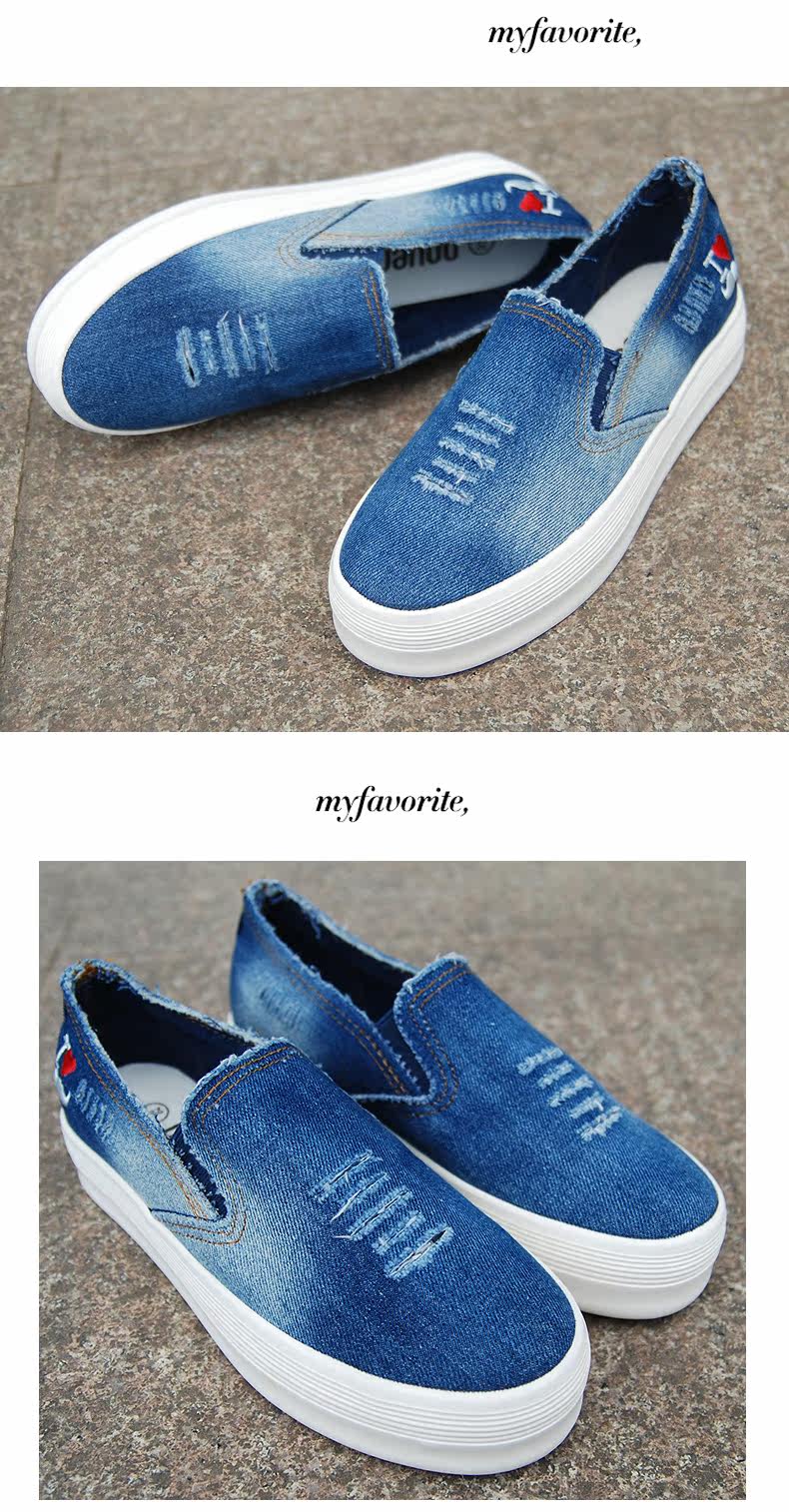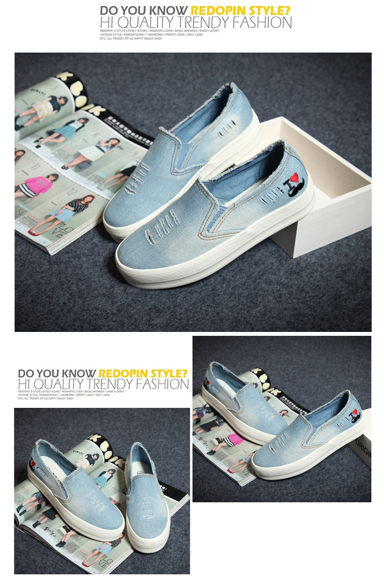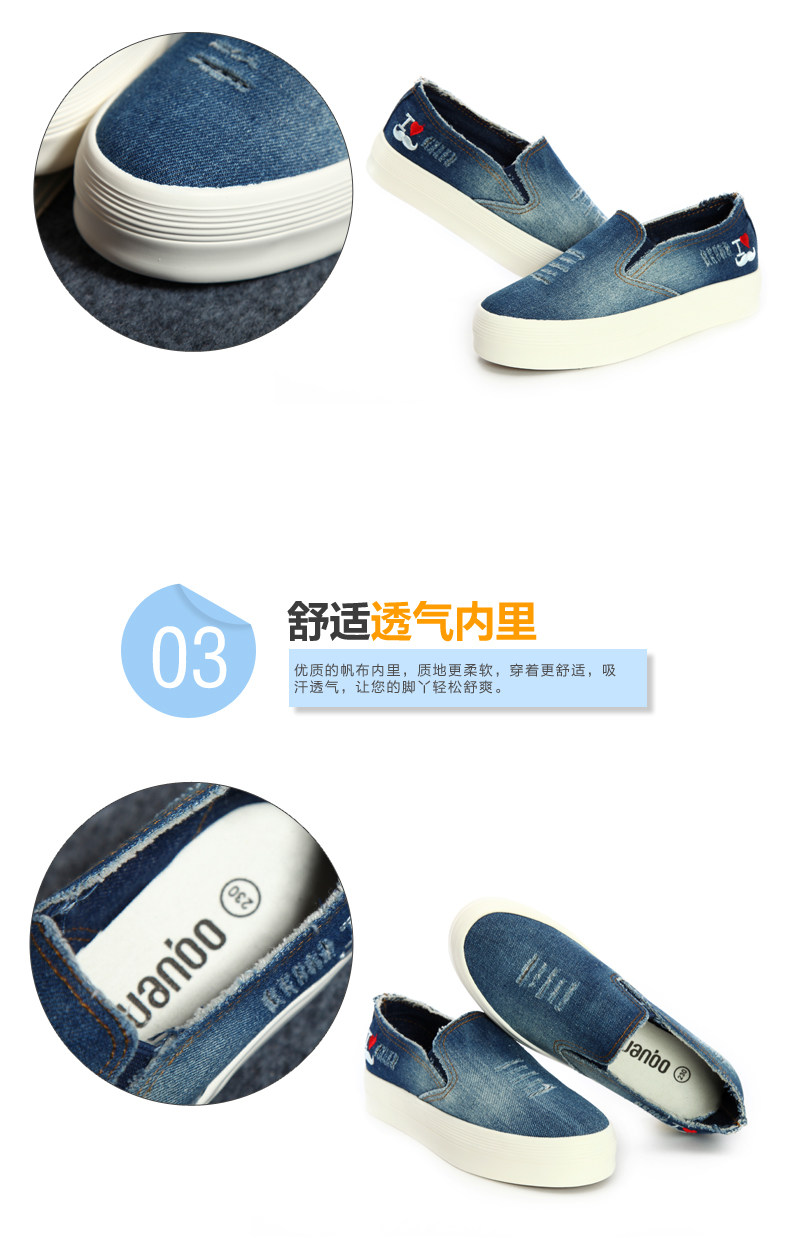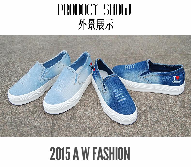 一脚蹬厚底帆布鞋女 牛仔布破洞透气乐福鞋 韩版学生休闲套脚板鞋