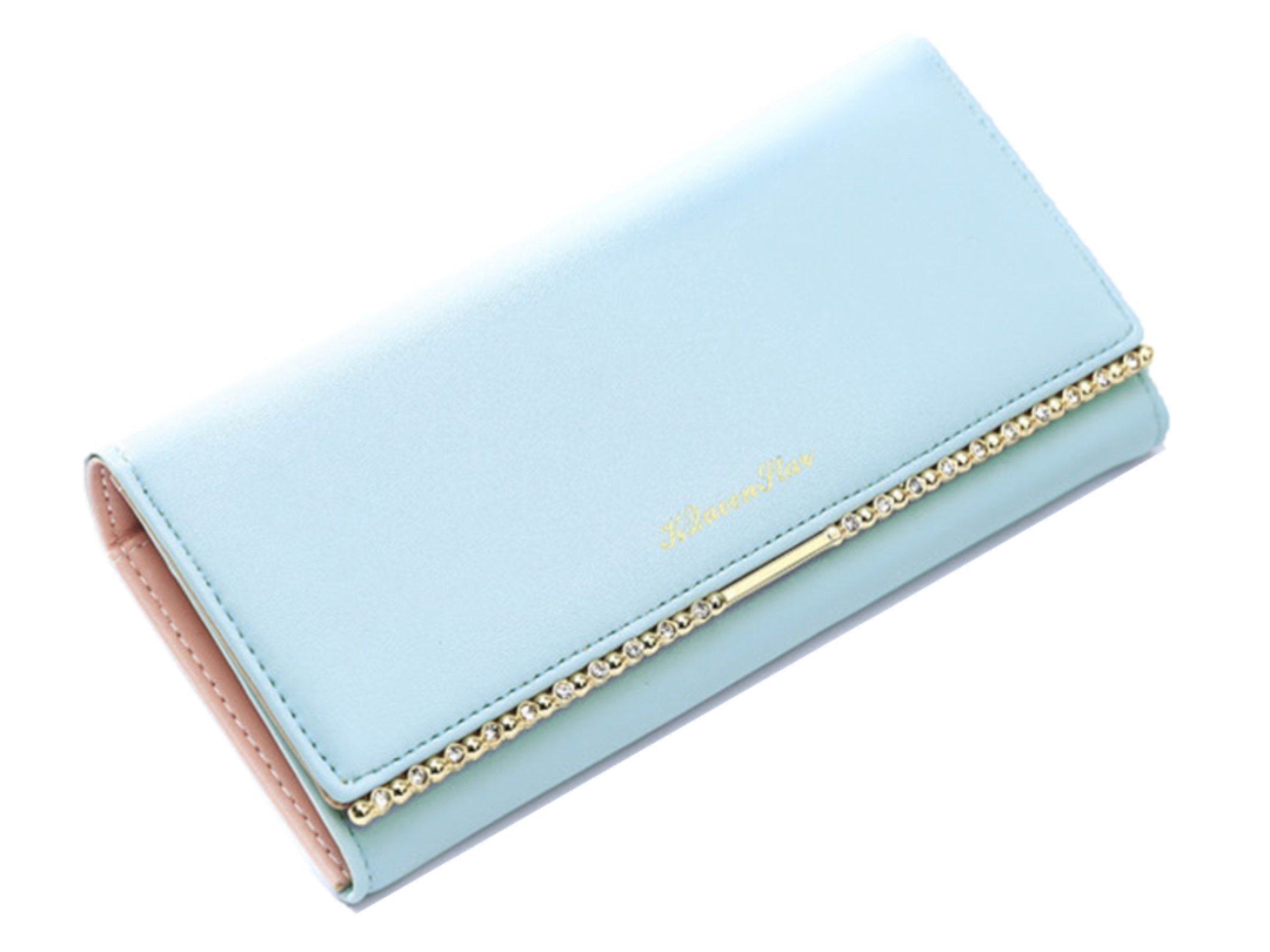 It is a cute tri-fold long wallet in which the Bijou aligned in line with the front is aligned.