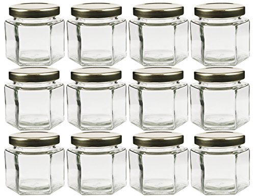 Cornucopia Brands Hexagon Glass Jars, Pack of 12, 4oz