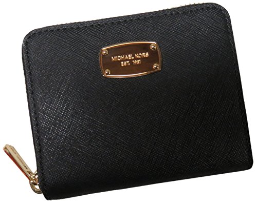 MICHAEL KORS JET SET ZIP AROUND BLACK SAFFIANO LEATHER BIFOLD WALLET GOLDEN HARDWARE