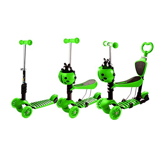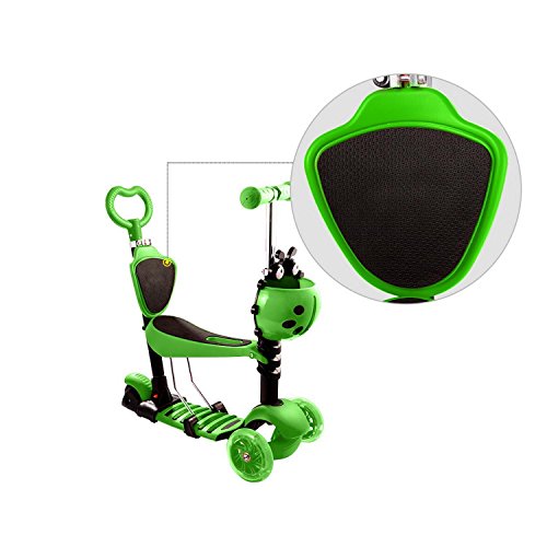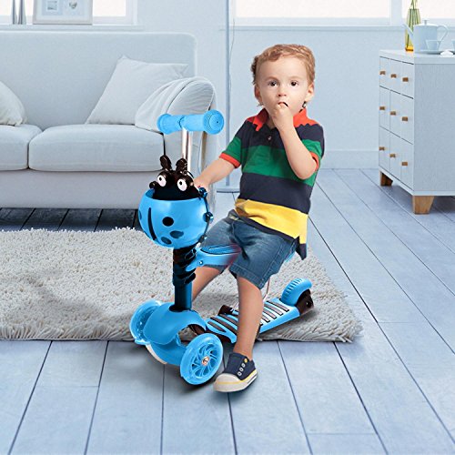 -. Title : Kaluo Toddler Kids Kick Scooter 5-In-1 3 Wheel Adjustable Height T-bar Push Kickboard Ride On Toys with LED Flashing Wheel, Detachable Seat & Cartoon Basket