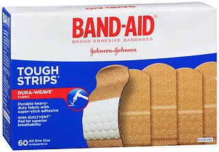 Studio : Johnson Johnson Sales Publisher : Johnson Johnson Sales Binding : Health and Beauty Product Description Inside every Tough Strips bandage you'll find these unique technologies: Greater durability: Dura-Weave fabric for heavy duty protection. Superior breathability: Quiltvent pad with air channels. Hurt-Free pad won't stick to the wound. Superior adhesion: Super-stick adhesive to stay on longer. Sterile unless individual wrapped is opened or damaged. 1 in x 3-1/4 in (2.5 cm x 8.3 cm) each. 0