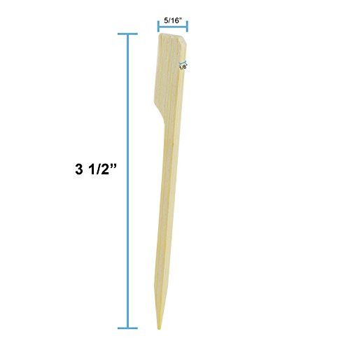 SET OF 2,000: Our 3.5” long extra-sharp all-natural bamboo skewers are a superior accessory for grilled meats and vegetable kebabs. Stronger and sharper than regular skewers with a wider, paddle-shaped opposite end gives these skewers a better hold for eating and rotating kebabs, various hors d'oeuvres, and fondues.