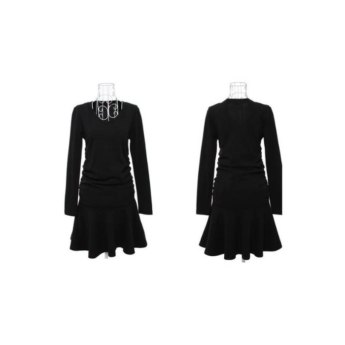 V넥 긴 소매 미니 원피스 그레이 블랙 S,M,L,XL【병행수입품】sk0020 (XL,블랙)