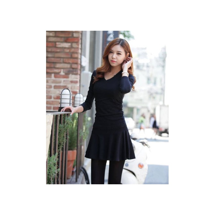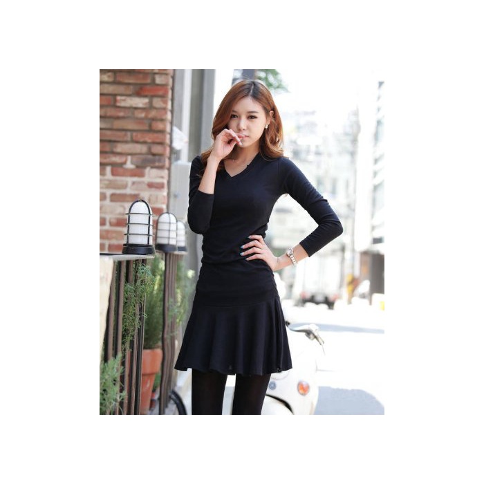 원본상품명: Vネック長袖ミニワンピス グレ ブラック S、M、L、XL【行輸入品】sk0020 (XL, ブラック)