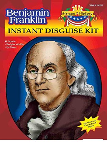 -. Brand : DOMAGRON -. Color : black -. Department : unisex-child -. EAN : 0010315824147 -. Feature : Whether dressing up for Halloween or your Patriotic celebration, this set is the perfect addition to your patriotic costume. This set contains a Wig & Eyeglasses. These sets are available in a whole array of patriotic figures including George Washington, Bren Franklin, Thomas Jefferson, and Uncle Sam. -. MPN : 1-24147 -. PackageQuantity : 1 -. PartNumber : 1-24147 -. ProductGroup : Apparel -. ProductTypeName : CHILDRENS_COSTUME -. Size : ALL -. Title : Heroes in Patriotic History Instant Disguise Set - Ben Franklin -. UPC : 010315824147