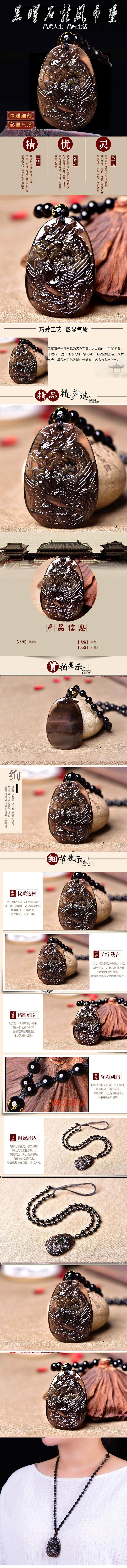 开光属鸡护身符麟凤争辉黑曜石吊坠生肖开运吉祥物