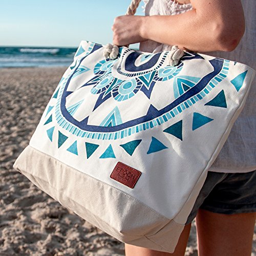 -. Brand : Epoch Collective -. Color : Navy Blue -. Department : womens -. EAN : 9350974000034 -. Feature : Beautiful Hand Crafted Designs, Exclusive to Epoch Collective to match our Luxury Round Beach Towel Range. / High Quality 20oz Cotton Canvas material - a beach tote seriously made to last. / Extra Large Bag Size with large internal zip pocket and separate phone/sunglass pockets. Room to fit EVERYTHING! / Luxuriously finished with thick nautical rope handle, natural leather labels and zip tags and heavy duty brass zippers. -. Model : CBB-NAZR-004 -. ProductGroup : Apparel -. ProductTypeName : LAGE -. Size : X-Large -. Title : The NAZAR Canvas Beach Tote Bag with Nautical Rope Handle