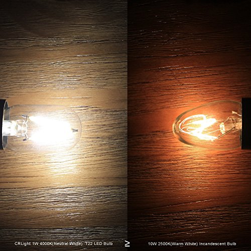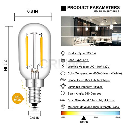 CRLight 1W LED Filament T22 Night Light Bulb, 4000K Daylight (Neutral White) 150LM, 15W Incandescent Equivalent, E12 Candelabra Base Lamp T22 Mini Tubular Shape, 360° Beam Angle, Non-dimmable, 2 Pack