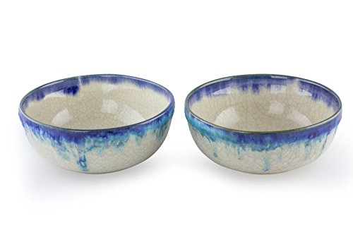 NOVICA Hand Blown Blue and White Modern Ceramic Bowls 'Pacific Breeze' (pair)