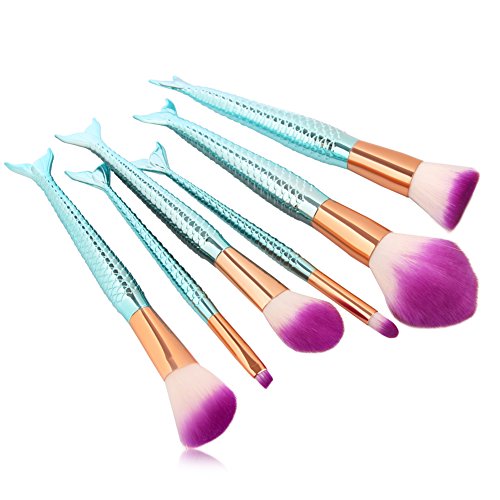 메이크업 브러쉬 Yashaly 메이크업 브러시 3D 인어 레인보우 브러시 메이크 브러시 세트 6개 다기능 화장 브러시 아이 라이너 브러시 아이브로우 브러시 아이새도우 브러시 립 브러시