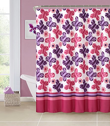 Wind Song Purple Pink White Butterflies Flowers Girls Printed Shower Curtain