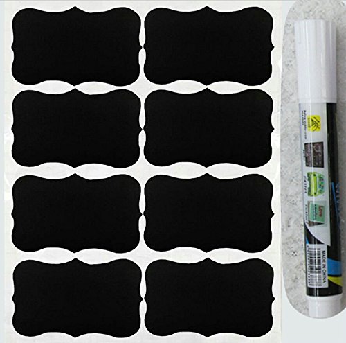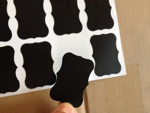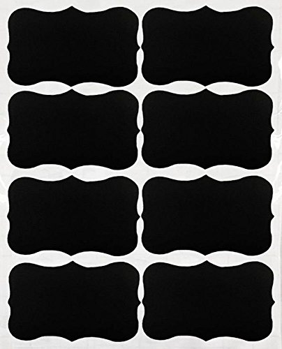 - Feature : HUGE SET ★ A total of 40 fancy black chalkboard labels, each 2 inches by 3.5 inches. ★ All in one style (fancy rectangle style shown in top picture). ★ You'll have no trouble reading what is written on your customized label when you use these convenient large labels. / MADE TO LAST ★ Made of strong vinyl plastic with a quality matte finish, the writing surface is smooth and provides the perfect surface for writing with any color chalk or a chalk ink pen. These are not glorified stickers cut out of cheap contact paper so they won't rip or tear. / CONVENIENT & REUSABLE ★ Use immediately from the package - just peel off the backing and stick them on! ★ Labels can be readjusted in the first 20 minutes after you apply them so they look perfect. ★ Wipe clean with a damp cloth to change what you have written. The labels themselves are waterproof, so they won't wash off, even in the dishwasher. / 100% GUARANTEE ★ Buy with confidence with our no hassle lifetime guarantee! If our labels don't last or you aren't totally happy with them, we'll replace them or refund your purchase price. / VERSATILE ★Use to label mason, ball or other canning and spice jars, storage containers, bins, boxes, glasses, anything with a smooth finish. Organize cupboards, pantries, craftrooms, everything! Create personalized water bottles, custom wine bottle labels and homemade gifts like candy, spices, peaches, cookie mixes, limoncello or wedding wine. Identify food on buffets and at parties