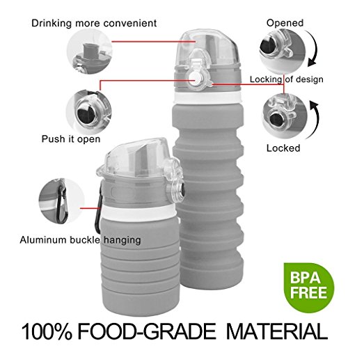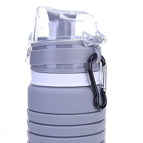 CLTEIN 17oz Collapsible Kids Water Bottle,BPA Free, Leak Proof Silicone Pocket-sized with Carabiner for Running,Camping