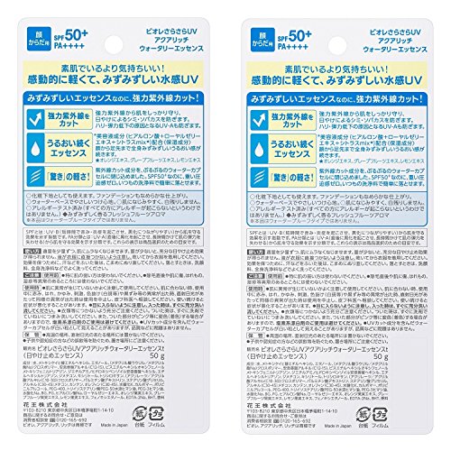 Super water proof sunscreen / SPF50+ PA++++ / For face and body /Moisturizing ingredients: Hyaluronic acid, royal jelly extract, citrus mix / Allergy tested (Formulated to minimize the risk of allergy) / Contents:50g / Made in Japan Ingredients: Water, Alcohol, Ethylhexyl Methoxycinnamate, Lauryl Methacrylate/Sodium Methacrylate Crosspolymer, Diethylamino Hydroxybenzoyl Hexyl Benzoate, Dimethicone, Acrylates/C10-30 Acrylate Crosspolymer, Glyceryl Stearate, Agar, Polyvinyl Alcohol, Sodium Hyaluronate, Citrus Grandis, Citrus Medica Limonum, Citrus Aurantium Dulcis, Xylitol, Butylene Glycol, Propylene Glycol, Sodium Hydroxide, Potassium Hydroxide, Phenoxyethanol, Disodium EDTA, BHT, Fragrance.Feature