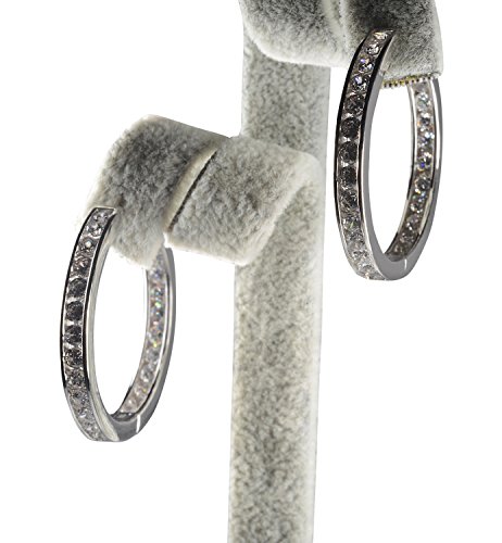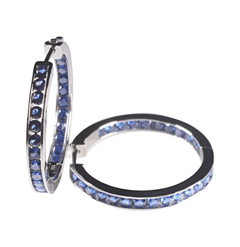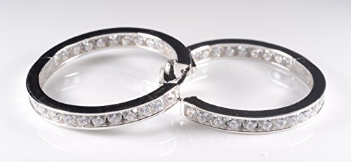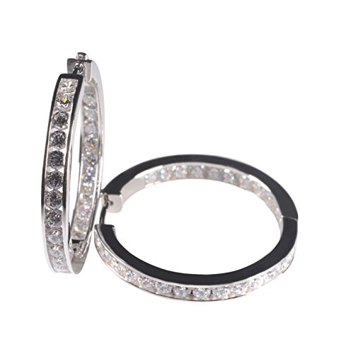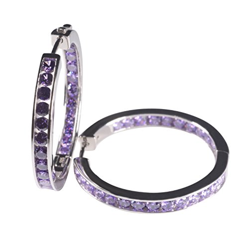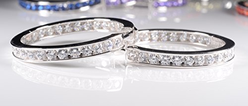 This silve hoop earrings are made with 925 sterling silver, outside and in inlaid 28 pieces 2.5mm 5A high quality American diamond zircon and 4 other colors zircon , total 5 cubic zircon colors for you to choice. 30mm diameter large, weight around 9.85g, rhodium plated and stamped with 925 indicating the quality.the earrings will come with the gift jewelry box. Also included will be a small piece of silver polishing cloth for you to take care of the jewelry which can last forever.Feature