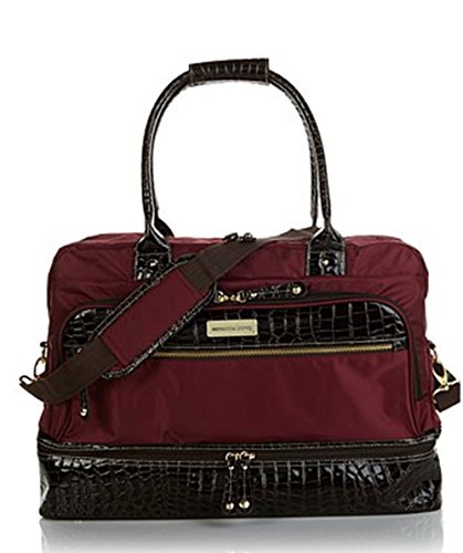 -. Brand : Samantha Brown -. Color : Burgundy -. Department : unisex-adult (luggage only) -. EAN : 0634304970754 -. Feature : Handles/Straps: Double barrel; adjustable, detachable shoulder strap Closure: Self-repairing zippers Construction: Top open with flat bottom, metal feet / 210D printed polyester lining 1 interior zippered sidewall pocket, 2 sidewall patch pockets / Made of 75% nylon, 25% croco-embossed PVC 2 exterior front zippered pockets; 1 exterior back zipper pocket / Approx. 20"L x 7-1/2"W x 14" H. great for a short trip! Great gift for her! -. PackageQuantity : 1 -. ProductGroup : Apparel -. ProductTypeName : LUGGAGE -. Size : SMALL -. Title : Samantha Brown Croco-Embossed Trim Drop Bottom Weekender Bag Burgundy -. UPC : 634304970754