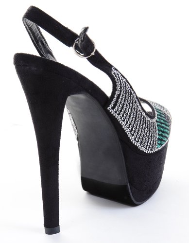 Sequin Glitzy Peep-toe Platform Slingback Stiletto Heels Fourever Funky