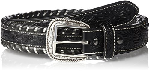 Studio : Ariat Men's Accessories Publisher : Ariat Men's Accessories Binding : Apparel Product Description This Ariat men's belt by medium and f western products is fashion forward fun for the modern cowboy. It features a genuine black leather and steel whip stich edge. Available in sizes 32-46. 0