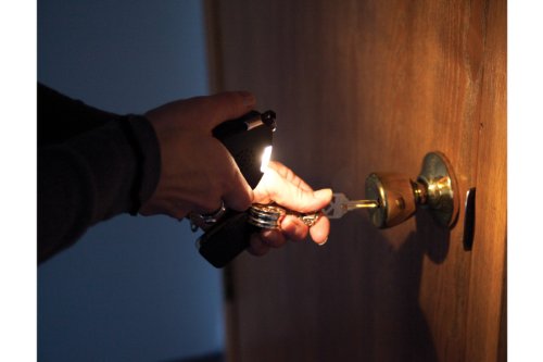 -. Feature : Personal protection alarm / 9 volt battery operated (not included) / 120 dB alarm / Flashlight feature / Strobe light may be used to draw attention or while jogging for safety